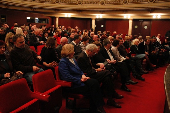 Marko Križevčanin i blaženi Alojzije Stepinac. Ponosni na naše članove, na nas kao dio naroda koji je stoljećima težio i duhovnom i kulturnom napretku, uputili smo se u Hrvatsko narodno kazalište. Kazališna tradicija u gradu vrlo je duga: dokumentirani kazališni život prati se od 17.st. kada su se predstave izvodile u Isusovačkom kazalištu na gimnaziji. Hermann Helmer, austrijski arhitekt, projektirao je kazalište te je 1873.god. grad dobio zgradu HNK-a. 20-tak godina kasnije i grad Zagreb postaje vlasnik zgrade HNK-a istoimenog čuvenog arhitekta. Ulaskom u kazalište, dočekala nas je ravnateljica gđa. Jasna Jakovljević. Slijedio je domjenak okrijepe u prostoru Noćne scene Zvonimir Rogoz, poznatog glumca koji je svoju karijeru započeo upravo u Varaždinu. Stali smo i na „ daske koje život znače“- glavnu pozornicu kazališta koja je spremno čekala početak predstave. Zajedničkom fotografijom ovjekovječili smo trenutke slave! Na prvome katu zgrade isprobali smo akustičnost koncertne dvorane u kojoj se izvode poznate
