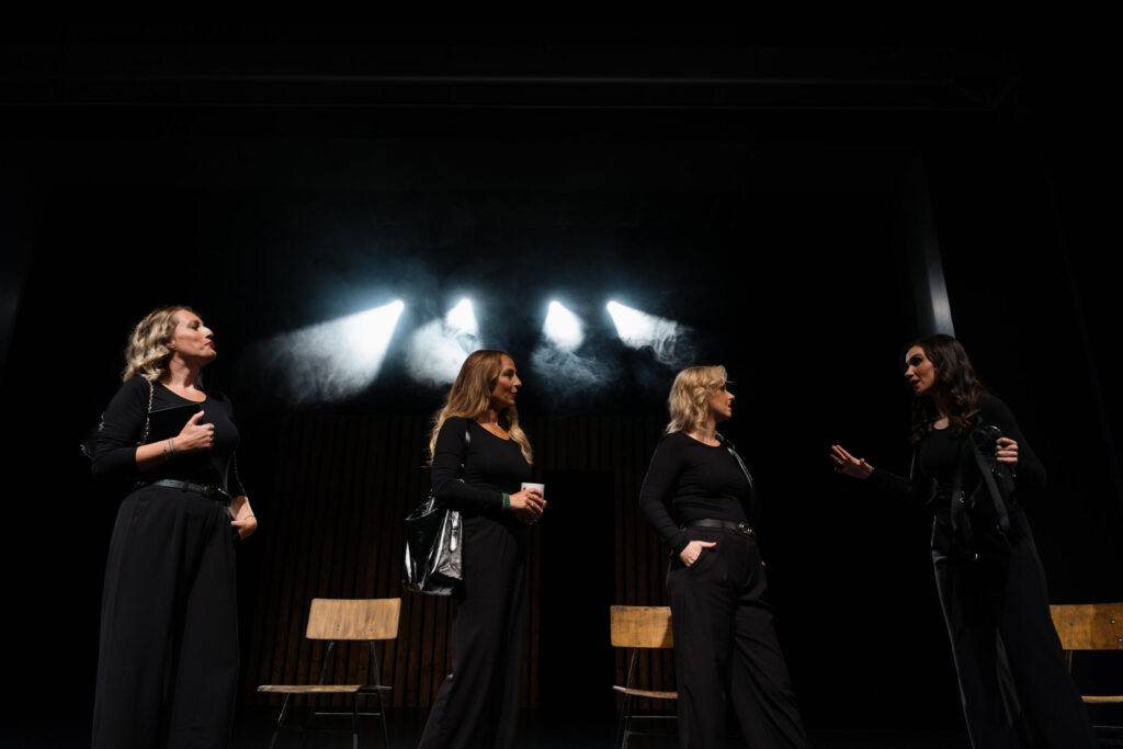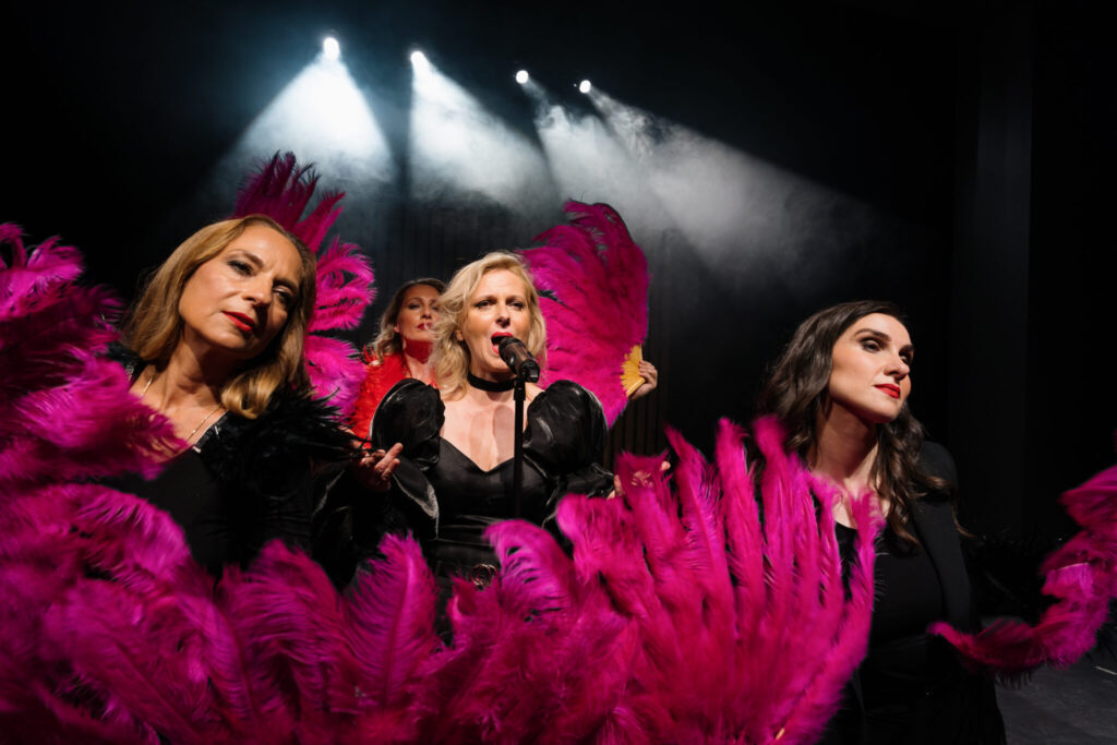 Praizvedba teksta Antonele Tošić „Bez privatnog, molim“ u režiji Paola Tišljarića donosi susret četiri žene okupljene oko čitateljskog kluba, gdje knjige postaju poticaj za razmjenu osobnih priča, ispovijesti i skrivenih emocija. Na sceni se, između redaka romana i gutljaja čaja, raspliću svakodnevne dileme, tajne i priznanja koja otkrivaju koliko je svaka od njih istodobno snažna i ranjiva. Žanrovski smještena između kriminalističke komedije i kabareta, ona kombinira britak humor, glazbene elemente i dinamičnu scensku igru. Na površini lagana i razigrana, predstava postupno otvara dublje slojeve pitanja identiteta, međuljudskih odnosa i potrebe za bliskošću. Konceptualno i idejno oslanjajući se na legendarne predstave i filmove Boba Fossea otvaramo prostor prepoznavanja i tihog razmišljanja o vlastitim ulogama i izborima.